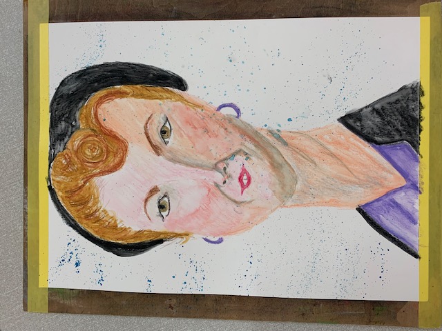 An interesting evening trying to paint in the style of Modigliani. He drew long faces, long thin noses, small blank eyes and a tiny mouth. This didn’t lend itself to flattering self portraits which caused great hilarity. We welcomed a new young member called Isaac Cook, who did a modern take on the style and shows great promise. Many thanks to Frank Bingley for leading this meeting, a huge success.. |