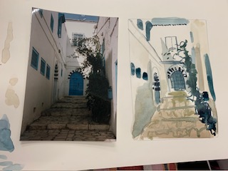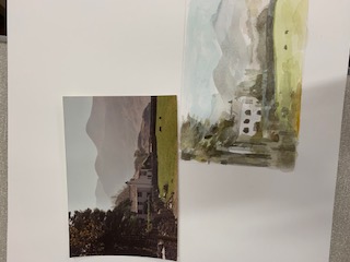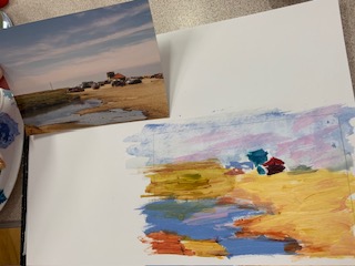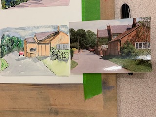 An unusual subject for May’s meeting, "Upside Down Painting". Our chairman, Michael Edwards, led the session and made it look so easy! We each were given a photograph and had to paint what we saw when it was turned the wrong way up. Michael said start by painting the shapes and colours that you see and then fill in the details. His demo picture looked amazing but most of us found it quite hard to ignore the image and just paint what we saw, especially as there was a twenty minute time limit on each painting. By coffee break and having completed two works most were getting the hang of it. Some just couldn’t get their heads around it, myself included. Too far out of their comfort zone but some very good work was done by the majority. We had a really good turnout with tables and chairs at full capacity. We welcomed new member Jan to the meeting and Sally has confirmed that we now have thirty five members in total. That is excellent news for the bank balance and it is lovely that most people rejoined the club after the AGM ( our official end of the annual subscription). |