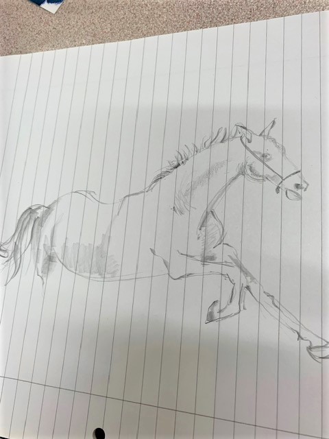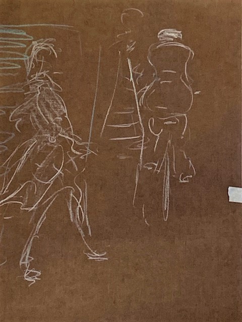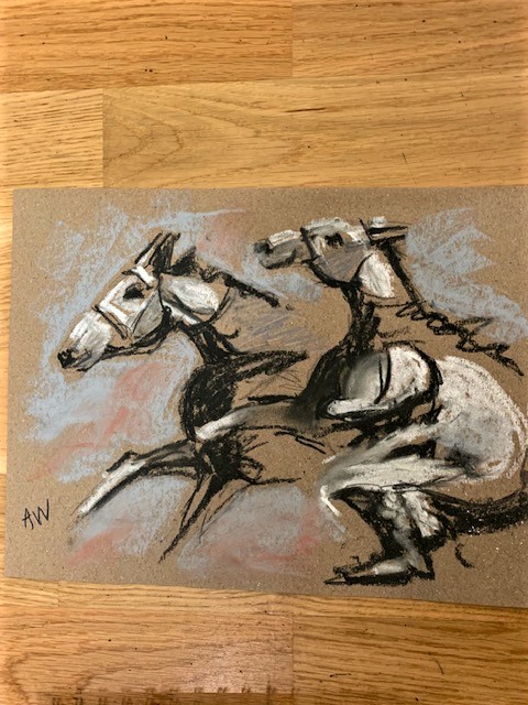 Horses and riders painted by Edgar Degas had that same sense of movement. He probably did quick sketches and finished the painting in the studio.