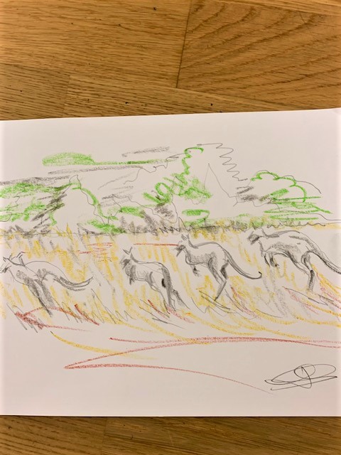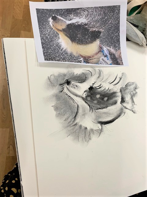 No cameras were allowed so Maxine did a lot of very quick sketches capturing the spirit and the movement. She found this very rewarding and made two paintings from her drawings.