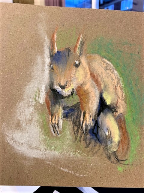 She started by telling us that she went to the Liverpool School of Art in the 1980’s doing the usual subjects such as landscapes etc. Then inspired by her love of sport and a wonderful library she became interested in the movement of figures and animals.