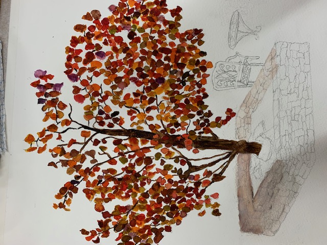 We had a really good turnout for our meeting this month, spare chairs were needed again. Our chairman welcomed everyone to the meeting and announced that we could paint, draw, use any medium and any subject as long as it was trees! As usual the room went very quiet as we all settled down and concentrated. After the tea break things lightened up and there was a lot of chatting going on, which is always lovely to hear. Most members didn’t finish their pictures as you can see from the selection shown. Can I just say, it is perfectly ok to make a start on your picture before you come to the meeting, even if it’s an outline sketch. The next event this month is our annual exhibition. Good luck to everyone entering on the 12th and 13th October.