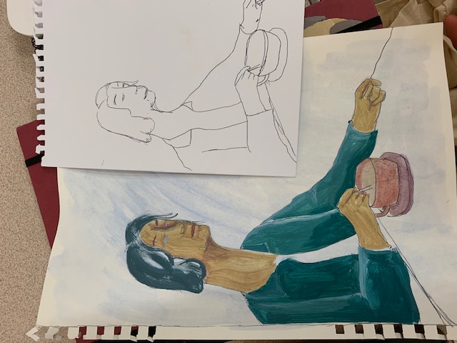 An interesting evening trying to paint in the style of Modigliani. He drew long faces, long thin noses, small blank eyes and a tiny mouth. This didn’t lend itself to flattering self portraits which caused great hilarity. We welcomed a new young member called Isaac Cook, who did a modern take on the style and shows great promise. Many thanks to Frank Bingley for leading this meeting, a huge success.. |
