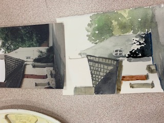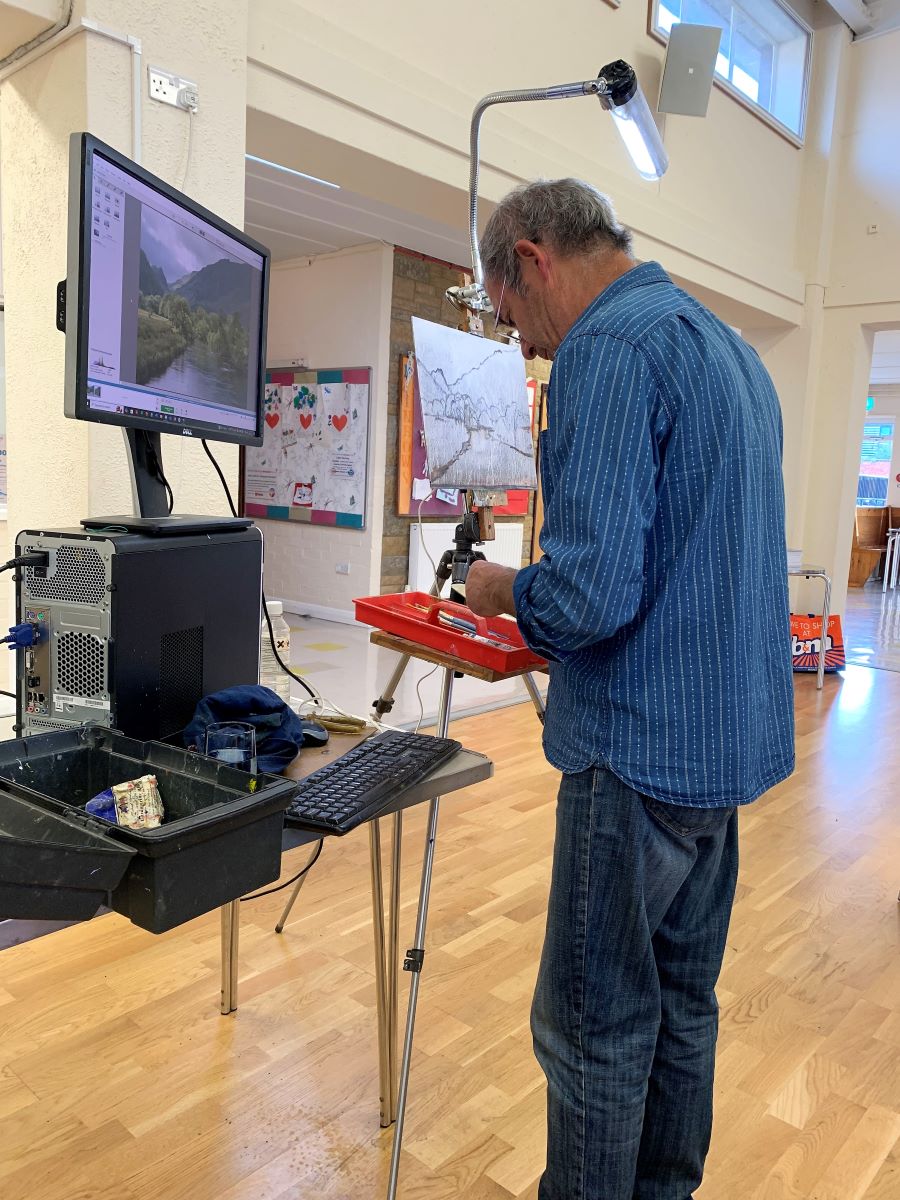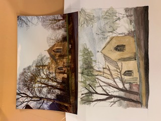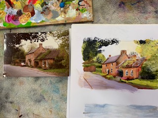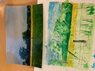 An unusual subject for May’s meeting, "Upside Down Painting". Our chairman, Michael Edwards, led the session and made it look so easy! We each were given a photograph and had to paint what we saw when it was turned the wrong way up. Michael said start by painting the shapes and colours that you see and then fill in the details. His demo picture looked amazing but most of us found it quite hard to ignore the image and just paint what we saw, especially as there was a twenty minute time limit on each painting. By coffee break and having completed two works most were getting the hang of it. Some just couldn’t get their heads around it, myself included. Too far out of their comfort zone but some very good work was done by the majority. We had a really good turnout with tables and chairs at full capacity. We welcomed new member Jan to the meeting and Sally has confirmed that we now have thirty five members in total. That is excellent news for the bank balance and it is lovely that most people rejoined the club after the AGM ( our official end of the annual subscription). |