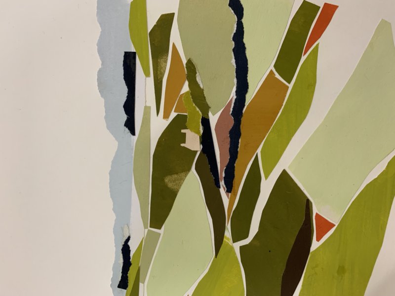 Reflections of the sky were painted in the foreground, the tree reflections next using vertical strokes.