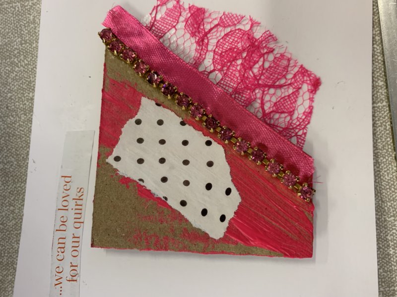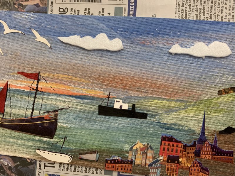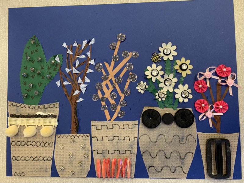 We had a lovely messy night making collage pictures. Not as much chatting as usual early on in the evening as everyone was concentrating on their work. By coffee break there were more cuttings, pieces of string, net and glue on the tables than on the pictures! Everyone relaxed after a ‘cuppa and biscuit’ and by 9.15, with the tables as good as new, we had produced some lovely pieces. We welcomed our newest member, Carol Barnard, from Gumley. |