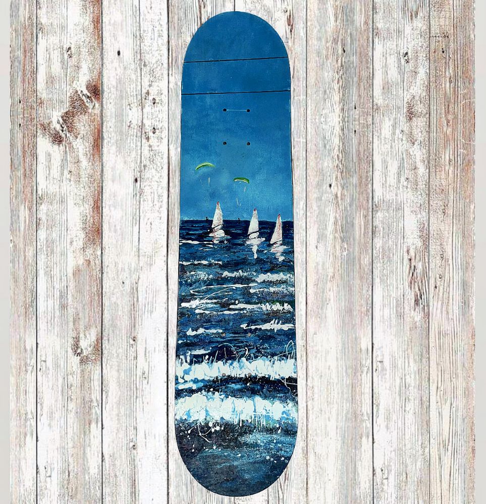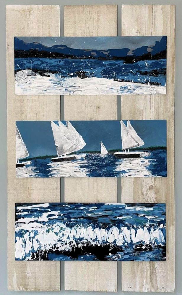 | I work in Market Harborough full time, and I have been a member of the Art club for just over 6 months, enjoying learning new techniques from fellow artists. I create sea inspired paintings in my spare time. My creation of art started at a young age, and I really fell in love with painting seascapes. Holidaying a lot in Devon, Cornwall and Norfolk growing up, I developed a love for the water. The aim of my work is to capture the excitement and movement of the sea, whether that be the waves or sailing boats, and present it in a contemporary style. I want you to look at my paintings and be transported to the moment captured in the frame! I hope my feelings of excitement are portrayed in my artworks, with the power to become a vital part of any interior design project. I can be contacted on chloegee23@live.co.uk |
